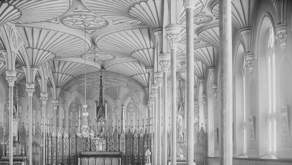 Established in 1869 as a bilingual school for girls, the Convent of Our Lady of the Sacred Heart (better known as the Rideau Street Convent) was soon expanding to meet enrolment demands. A new 2 ½-storey wing designed by architect-priest Canon Georges Bouillon (1841-1932) was opened in 1888, revealing the stunning Rideau Convent Chapel on the second floor.