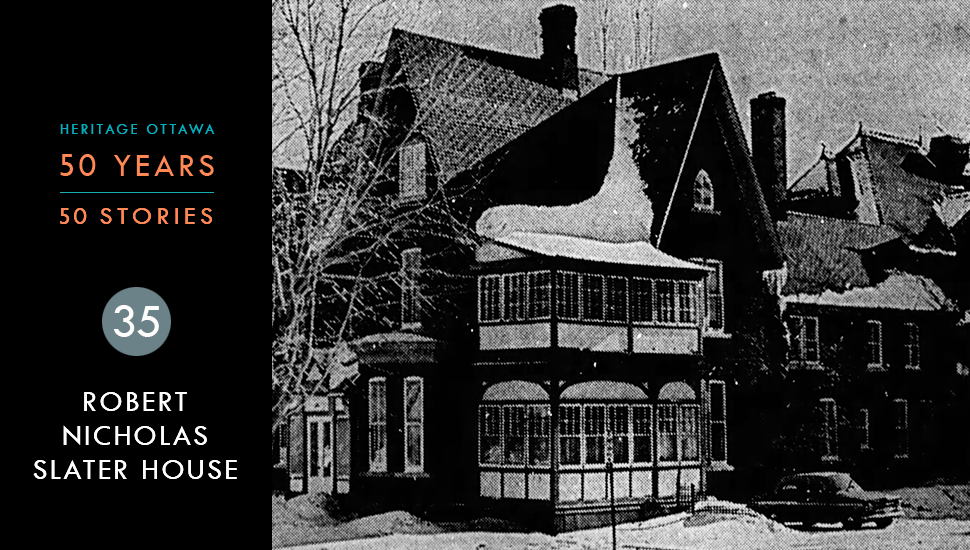 The former Robert Nicholas Slater House was demolished on May 6, 1993 as Heritage Ottawa and protesters watched. The site was converted to a 50-space parking lot.