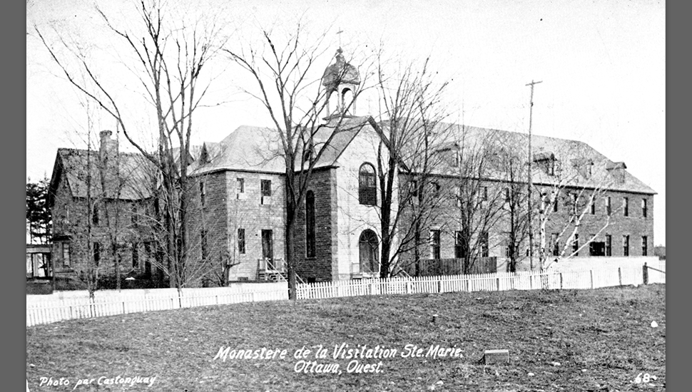 In 1910, the Sisters of the Visitation of Holy Mary, a cloistered order of nuns founded in Annecy, France in 1610, purchased a 5.2 acre estate at 114 Richmond Road in Ottawa West.  While awaiting completion of the monastery being constructed there by Ottawa builders Poirier & Son, Mother Superior Marguerite Marie de Viry and seven other nuns from France took up residence in The Elms, a villa on the site dating from 1865.