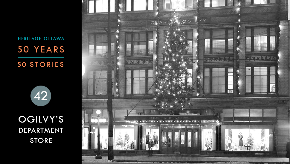 The new Charles Ogilvy Limited Department Store, constructed in 1907, was one of Ottawa's first steel and concrete buildings. Designed by Ottawa architects Northwood and Noffke in the Classical Revival style and known simply as “Ogilvy’s”, the building was a prominent landmark anchoring the corner of Rideau and Nicholas streets.