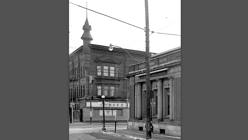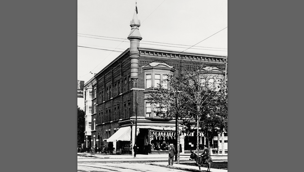 In 1900 a 4-storey, flat-roofed apartment block in a similar style was added to the east end of the building. Over the years, various commercial tenants have occupied the site. There have been several name changes, including Crosby & Carruthers Dry Goods Co. (1898), The Emporium (1907), Fleetwood Wilson’s Store (1916), the Ritz Hotel (1937) and Somerset House (1973).
