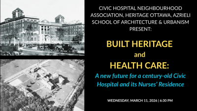 The Civic Hospital Neighbourhood Association is hosting, in collaboration with Heritage Ottawa and Carleton University’s Azrieli School of Architecture and Urbanism, an evening to raise awareness…