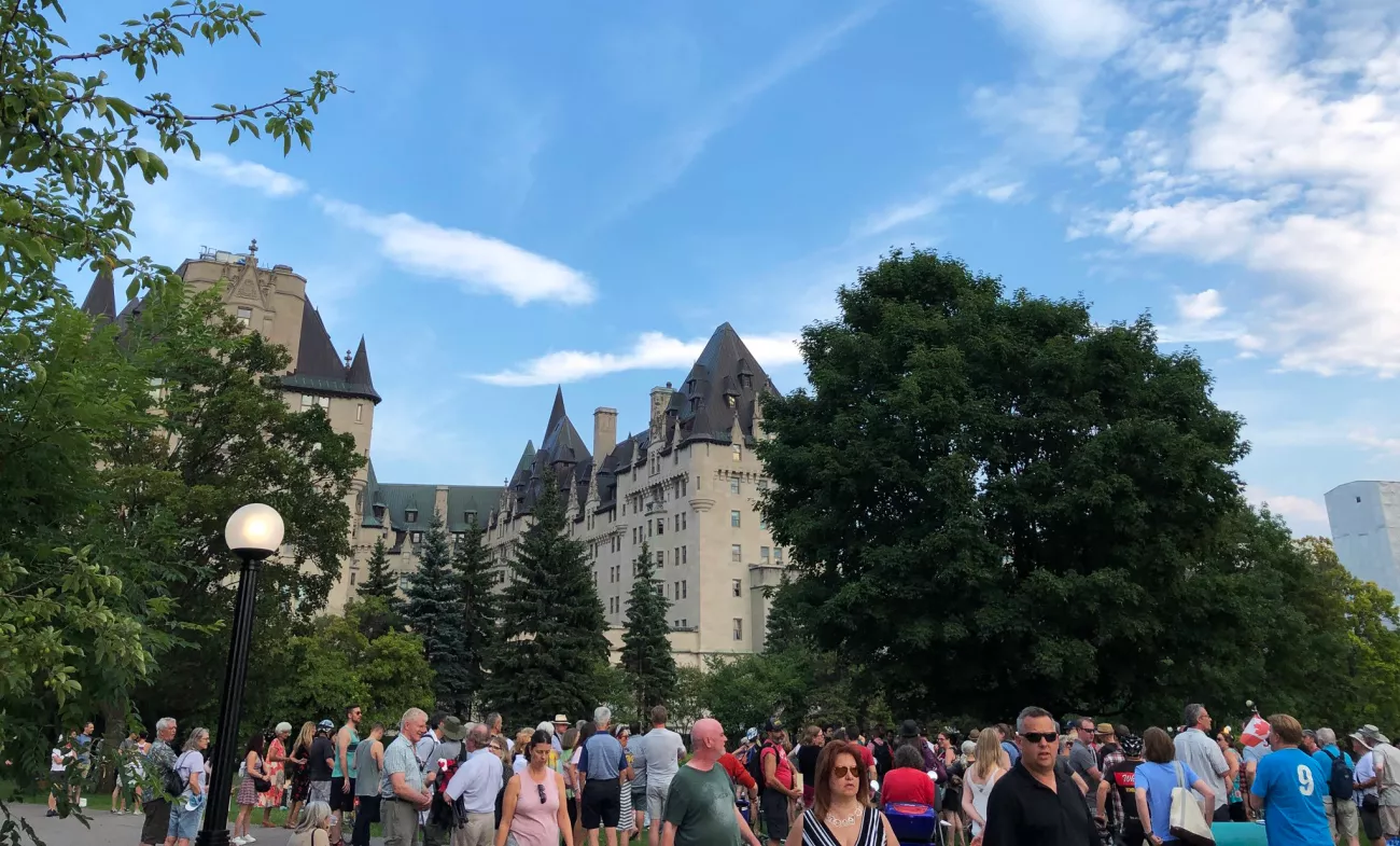 Canadian celebrity comedian Tom Green drew in the crowds at a sunset picnic in Ottawa on Saturday– in the shadow of the Château Laurier and its looming controversial addition.