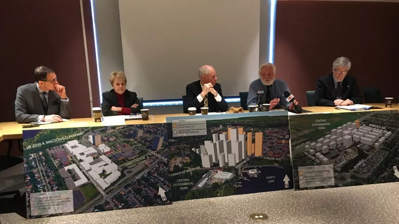 The hospital rejected the NCC's choice, and days later hospital officials and politicians held a news conference outside Mayor Jim Watson's office to announce their support for the Sir John Carling site, part of the Central Experimental Farm.