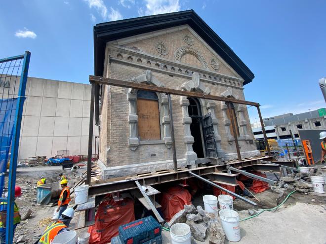 “This approach is more that just façadism,” states David Flemming, chair of HO’s Advocacy Committee. “The building in its entirety is being preserved. However, there needs to be thoughtful consideration on how the move will be done so the building and its heritage components are protected while the underground garage work is done and the structure is integrated into the new atrium.”