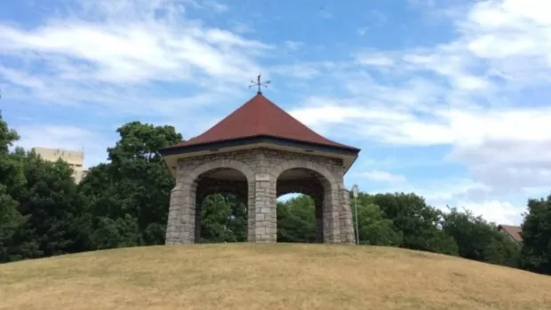 And the so-called "summer house", a stone hexagonal gazebo which sits on a small hill, is a landmark from nearby Cobourg, Tormey, Heney and Wurtemburg streets.