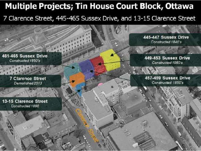 Note from Heritage Ottawa - After the heritage structure at 7 Clarence Street was demolished in 2014 due to structural concerns, Heritage Ottawa worked hard to convince the NCC that the initial "glass box" design proposed as a replacement was out of character with the traditional brick and stone architecture of the Byward Market Heritage Conservation District. The NCC listened and came up with a more suitable design that also earned approval of the local community. The building at 7 Clarence is part of a massive stabilization project involving several NCC properties.