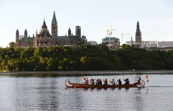 Afterward, Trudeau paddled the Ottawa River in a voyageur canoe, wearing a buckskin jacket and moccasins owned by his father, former prime minister Pierre Elliott Trudeau. He was joined by 12 Métis, Inuit, and First Nation youth.