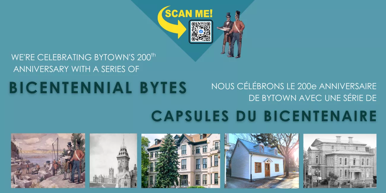 Two hundred years later we can still enjoy buildings, structures, monuments and landscapes that help tell the stories of how Bytown grew into the city we know today. Heritage Ottawa looks forward to sharing BICENTENNIAL BYTES of information with you about places that matter to all of us.