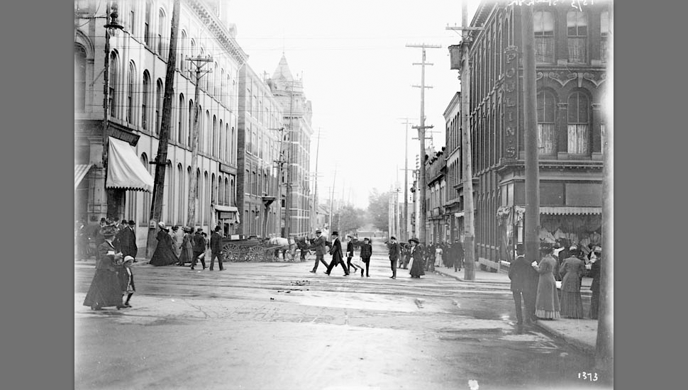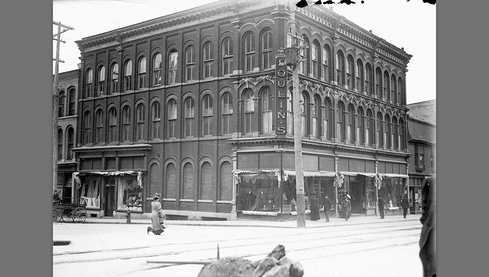 Poulin’s Dry Goods Store was a huge success and evolved into a large department store. By 1904, Poulin had purchased the building and neighbouring commercial buildings on the block.