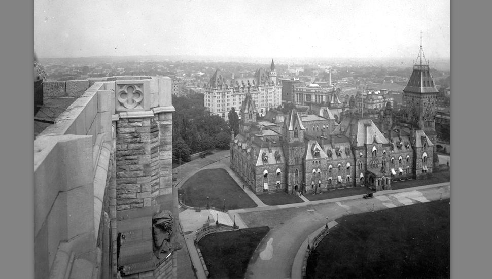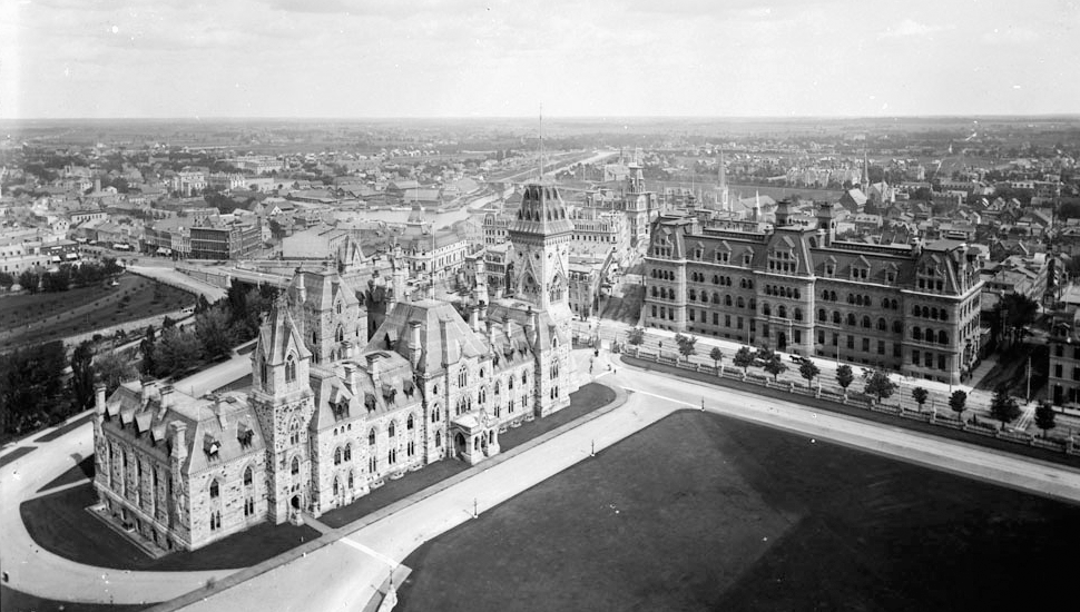 East Block, Parliament as seen from Centre Block, circa 1920s. Photo: Canada Deptartment of Public Works / Library and Archives Canada / PA-057517