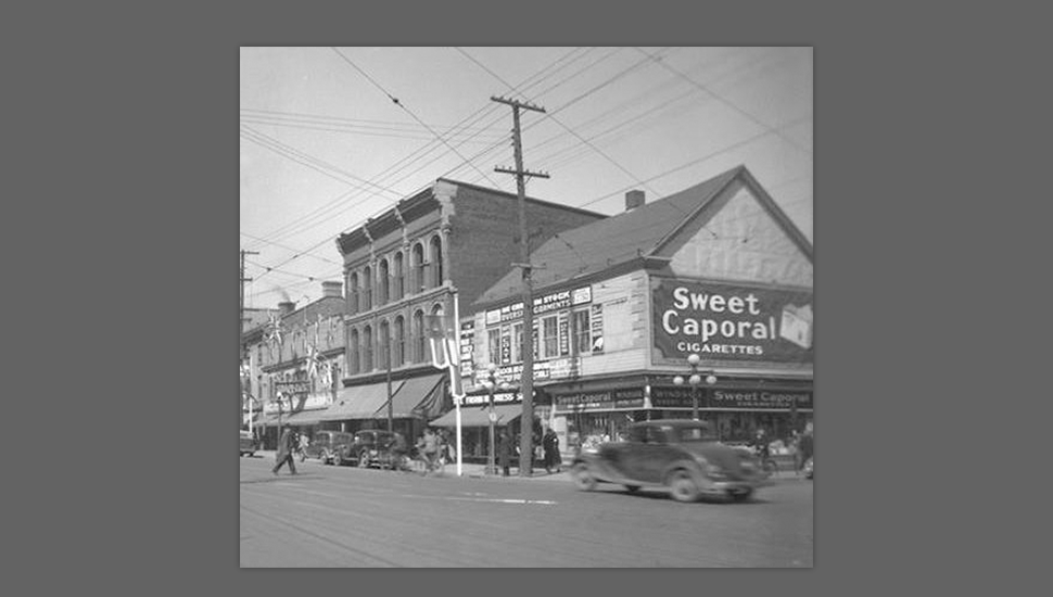 The Windsor Smoke Shop moved into the corner section of the building in 1948 and remained there until 1994.