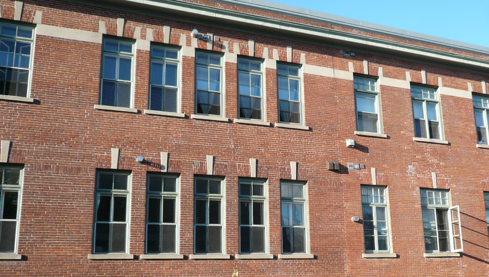 The building was originally constructed as a two-room elementary school in a neo-Classical style. The nearly square plan had a slightly projecting entrance bay in the south-east corner. The asymmetry of the main elevation was a common tactic known as an “extension plan” that allowed for a later, well-planned addition.