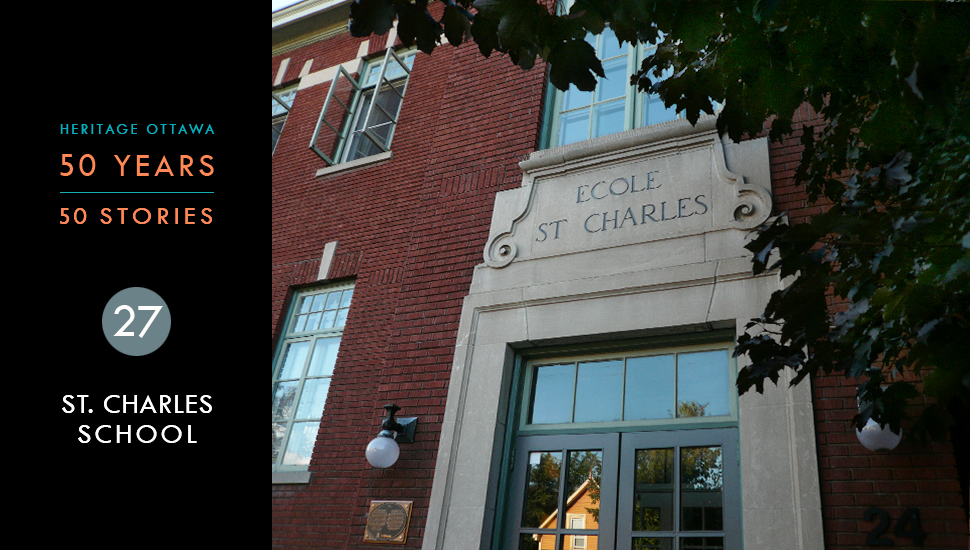 The former St. Charles School, designed by Moses Edey (1845-1919) and Francis Sullivan (1882-1929) for the Ottawa Roman Catholic Separate School Board, was built in 1910 to serve the French Catholic residents of New Edinburgh and Clarkstown/Eastview, an area south of Beechwood Avenue.