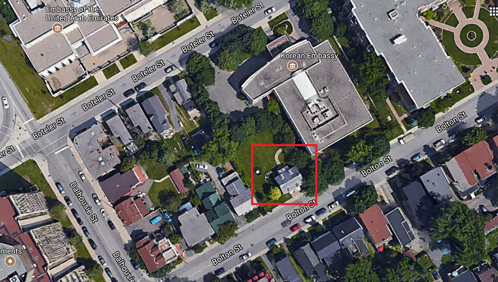 In June 1992, the Embassy of the Republic of Korea purchased an L-shaped lot consisting of house numbers 167-169 (a brick double dating from 1914) and 171-173 Bolton Street, plus three adjoining lots on Boteler Street. The City granted the rezoning required to construct a new Chancellery on the vacant portion of the property.