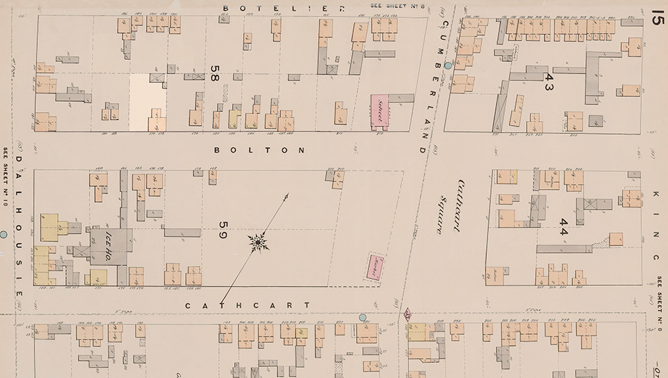 Goad's Fire Insurance Plan, June 1878. The property at 171-173 Bolton Street is highlighted. Image: Library and Archives Canada