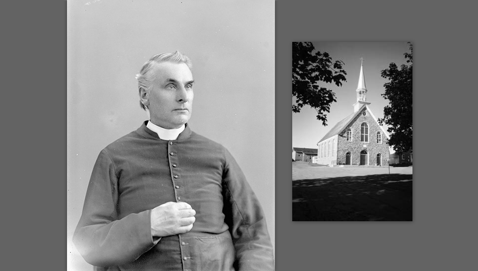 Canon Georges Bouillon, architect of St. Isidore Church, in June 1896. Photo: William James Topley, Library and Archives Canada / PA-161267. Right: Undated photo of St. Isidore Church: City of Ottawa.