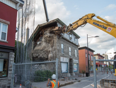 Crews are demolishing part of the decades-old Hintonburg building that partially collapsed earlier this week.