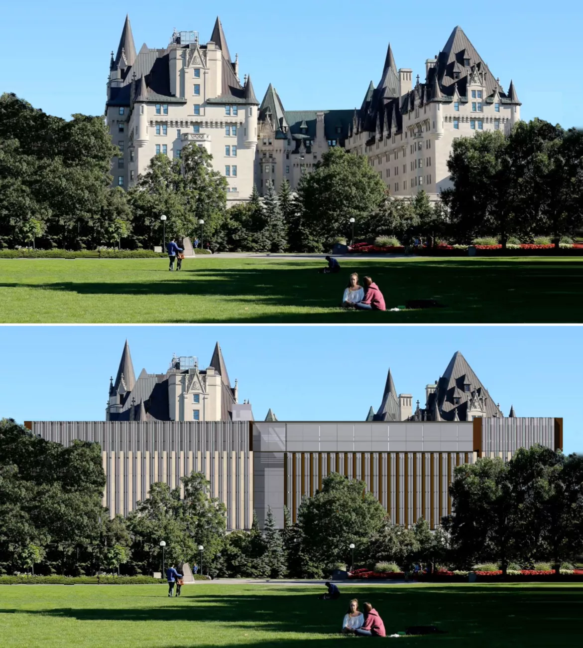If this visual intrusion weren’t enough, the proposed expansion will cleverly conceal the views of Ottawa’s beloved Chateau from Major’s Hill Park, where untold thousands of citizens gather daily to admire and enjoy the beauties of our Capital.
