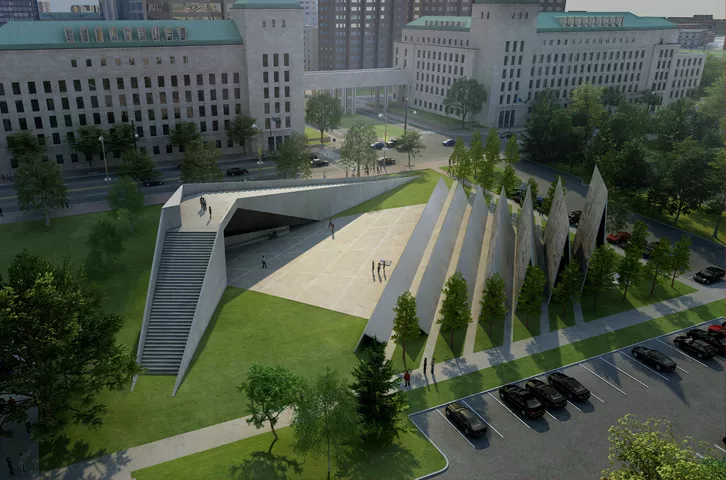 On June 26, 2015 the Royal Architectural Institute of Canada, Heritage Ottawa, and architects Barry Padolsky and Shirley Blumberg filed an application in the Federal Court challenging the National Capital Commission’s decision to break ground for the Memorial to the Victims of Communism on Wellington Street, just southwest of the Supreme Court of Canada.