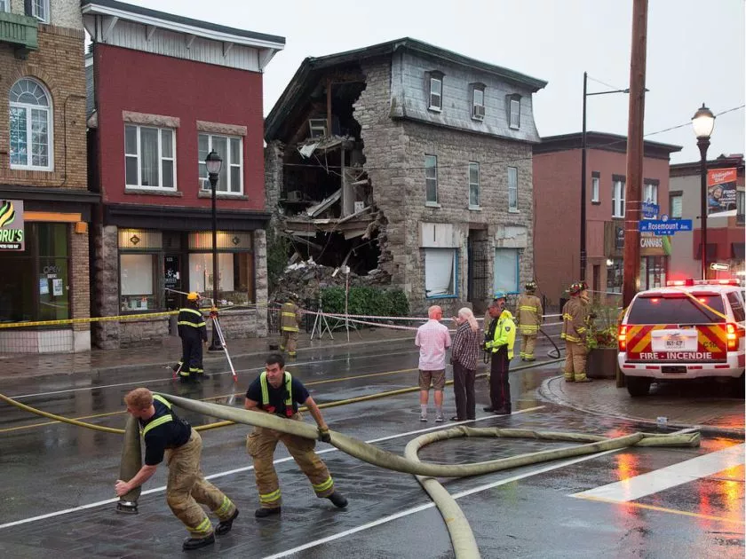 The 1881 structure was a bank for most of its life and was given heritage protection in 1996. The legal designation didn’t save it, though: The engineers found that leaking water washed out mortar, which weakened the wall until it couldn’t hold itself up any longer.