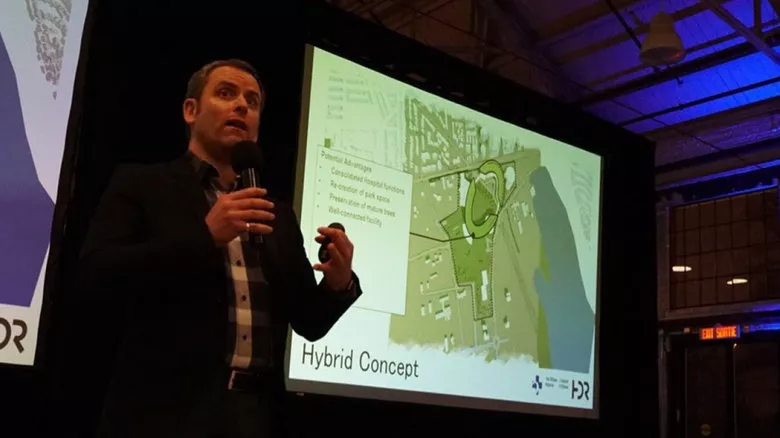 Jason-Emery Groen, from architecture firm HDR, ran through the proposal which includes three main buildings mostly oriented toward Carling Avenue.