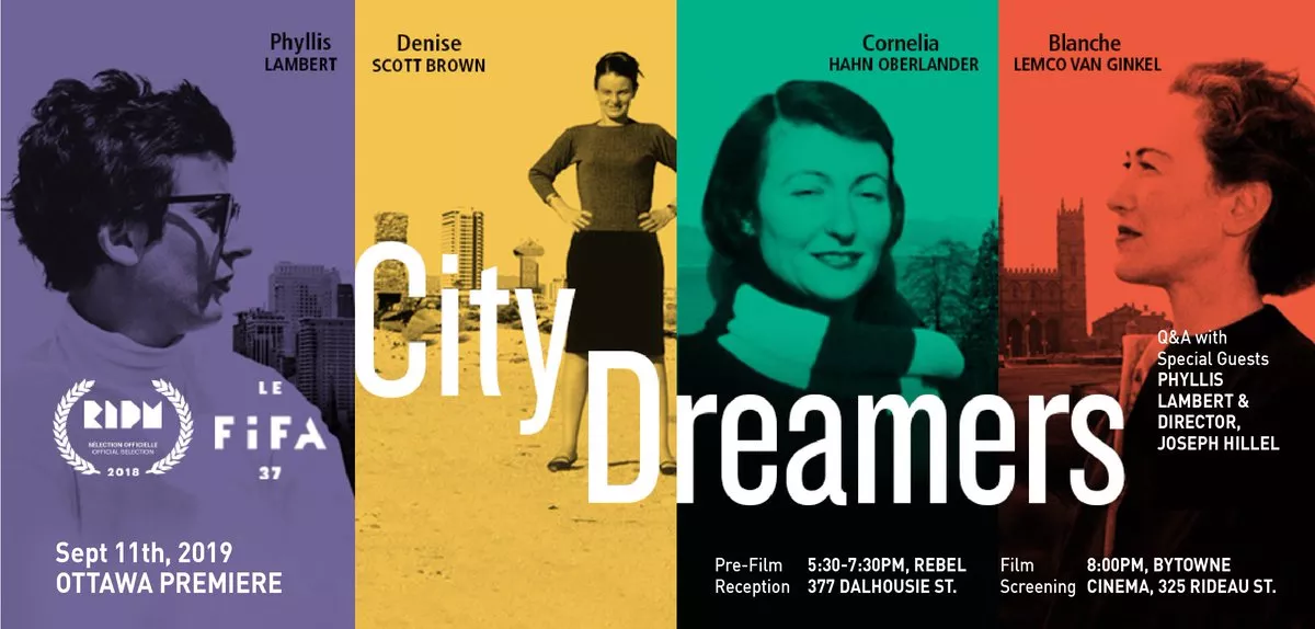 The film follows, "Phyllis Lambert, Blanche Lemco van Ginkel, Cornelia Hahn Oberlander, Denise Scott Brown – four trailblazers who became accustomed to being the only woman in the room. Each has an extensive list of accomplishments in architecture, planning and landscape architecture dating back 60+ years and has taught, mentored and inspired generations of professionals."~ City Dreamers
