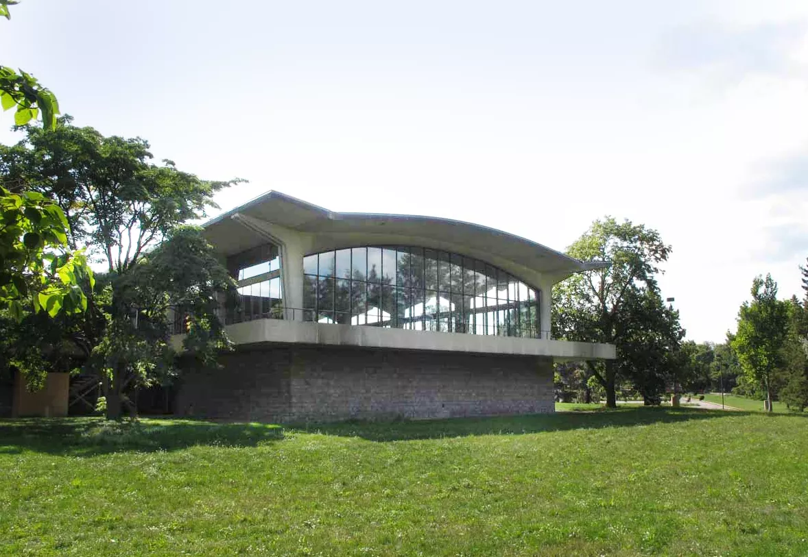 Who cares about a government cafeteria, right? Well, this one’s unusual. Hidden away in the trees on the bluff, the “west annex” to the Sir John Carling Building opened in 1967, in an era when we built government stuff really nicely.