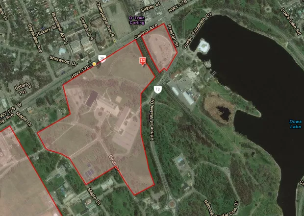 The site includes 50 acres on two levels stretching from the current NCC parking lot near Dow’s Lake heading west and up an embankment to the former site of the Sir John Carling building.
