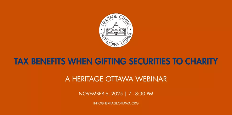 Are you considering donating securities, mutual fund shares or life insurance to Heritage Ottawa? It's an efficient way to give charitably since capital gains tax does not apply.