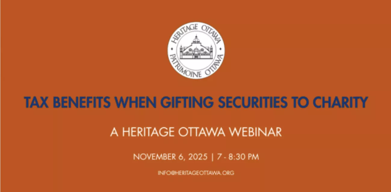Some of the key takeaways of donating securities to Heritage Ottawa through CanadaHelps include: significant benefits in eliminating the capital gains on securities appreciation, providing larger tax receipts, and greater tax credits to donors. At the same time, Heritage Ottawa receives the full cash value of the donated securities, mutual fund shares or life insurance, facilitating a greater financial contribution toward the organizations undertakings.
